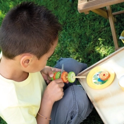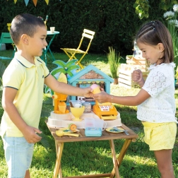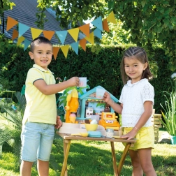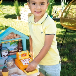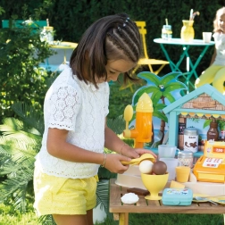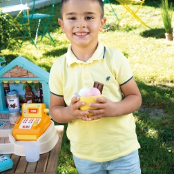 Le bar de plage SMOBY est un stand créatif pour jouer au vendeur et au client. Les enfants s’essaient à la préparation de coupes glacées, de smoothies et de brochettes de fruits, au décor avec nappages et vermicelles, ainsi qu’à l’encaissement des achats sur une caisse fonctionnelle. Les détails réalistes stimulent l’imagination, les compétences sociales et la motricité fine.