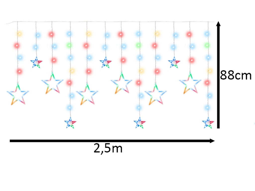 Apportez une touche de magie de Noël à votre intérieur avec ce rideau lumineux LED à étoiles de 2,5 m et 138 LED. Il offre un éclairage multicolore, 8 modes lumineux et une alimentation secteur pour un fonctionnement continu sans piles. Idéal comme décoration festive et pour un éclairage d’ambiance chaleureux toute l’année.