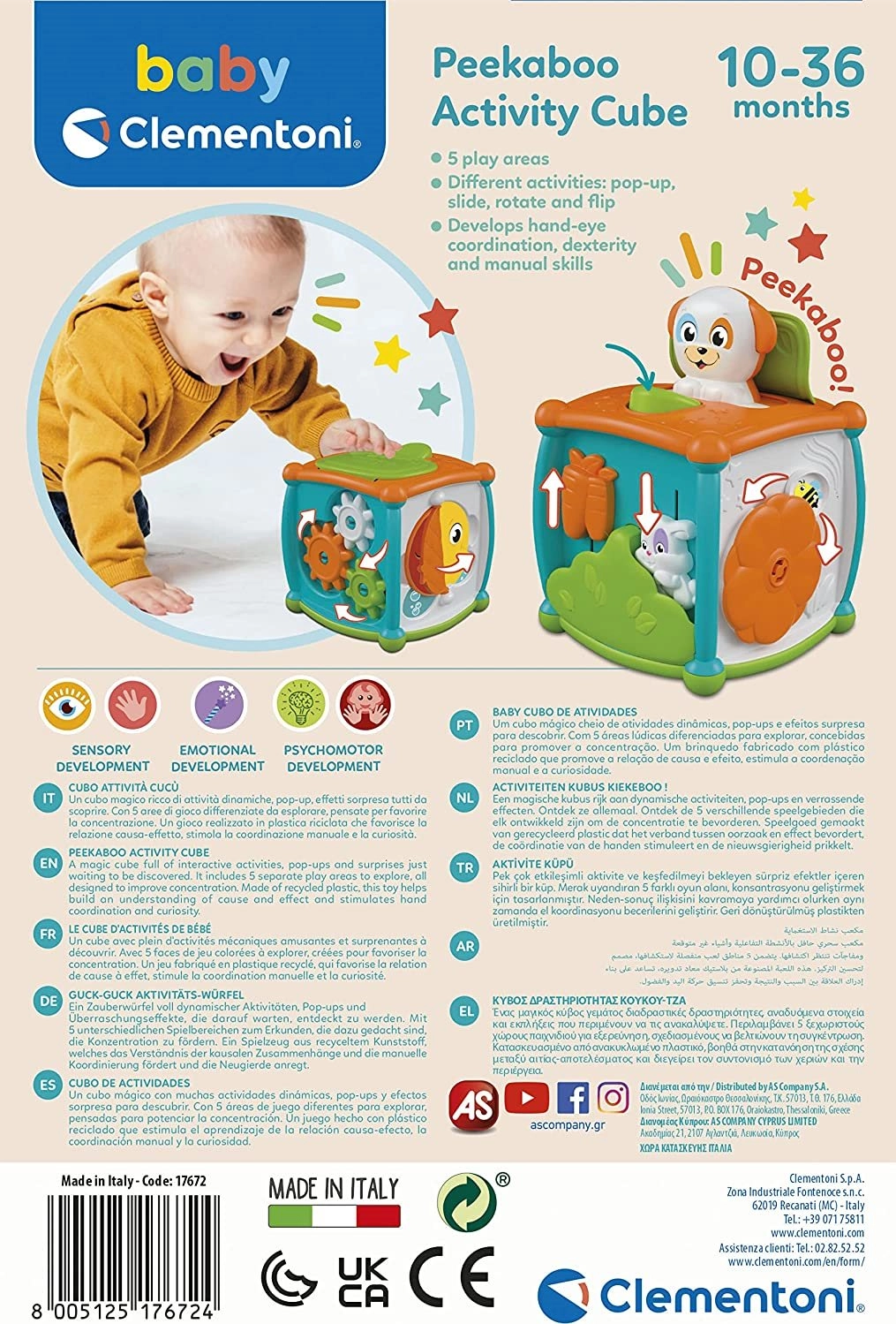 Un cube Clementoni de la gamme Baby, coloré et dynamique, rempli d’activités amusantes et d’effets surprenants. Idéal pour développer les capacités tactiles et motrices grâce aux petits animaux qui apparaissent et à sa prise en main facile.
