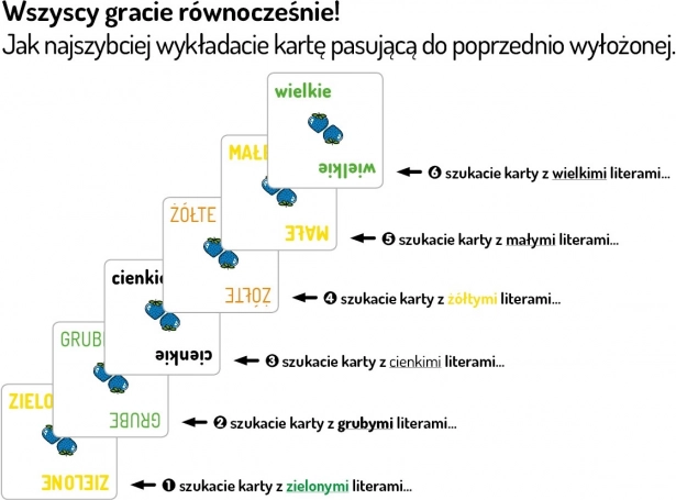 Gra Pozorów est un jeu d’ambiance rapide et accrocheur pour 2 à 4 joueurs dès 8 ans, qui mettra à l’épreuve votre vivacité d’esprit, votre attention et vos réflexes. Tout le monde joue en même temps et tente de se débarrasser de ses cartes le plus vite possible, mais attention – tout n’est pas ce qu’il paraît ! Idéal pour les soirées en famille ou entre amis, une partie dure environ 20 minutes.