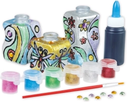 - 3 vases, 6 peintures pailletées, pinceau, strass décoratifs, pâte à modeler