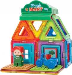 Avec le set Magformers Petite ville – Marché, vous pouvez construire diverses structures architecturales selon votre imagination. Il contient 14 formes magnétiques et 8 accessoires fonctionnels, dont une petite vendeuse, permettant de créer des coupes semi-ouvertes où l’on voit d’un côté les contours extérieurs du bâtiment et de l’autre l’aménagement intérieur.