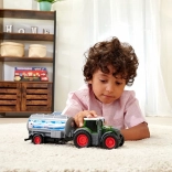 La remorque avec citerne de collecte comporte des décors thématiques, une échelle et une béquille escamotable, stimulant l’imagination et des scénarios de ferme réalistes.