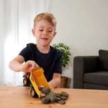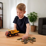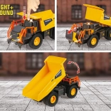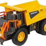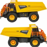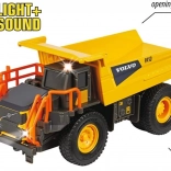 Camion-benne VOLVO sous licence, sans moteur, avec effets lumineux et sonores. Cabine en métal. Les pneus en caoutchouc souple franchissent aisément les terrains difficiles du chantier. Parties mobiles : capot et benne basculante. Longueur : 20 cm.