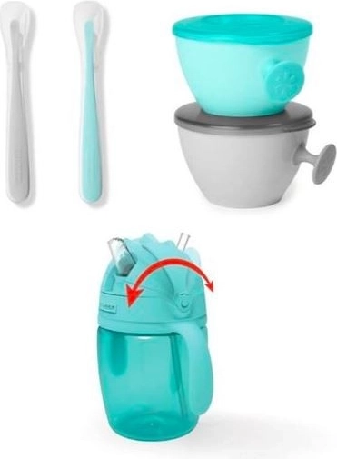 L'ensemble de repas Easy-Feed est un accessoire indispensable pour tous les parents. Design ergonomique facilite le service des repas d'un simple mouvement, tandis que les cuillères en silicone souple protègent les gencives des enfants. Forme arrondie des cuillères aide à essuyer facilement l'excès de nourriture sur le visage de l'enfant.