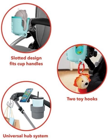 Le porte-boisson Stroll & Connect de Skip Hop garantit que votre enfant aura toujours sa boisson à portée de main. Il convient aussi bien aux tasses qu’aux bouteilles et, grâce aux crochets universels, il s’adapte également aux chariots de courses. Les crochets supplémentaires pour suspendre des accessoires amuseront tous les tout-petits.