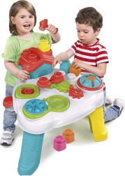 Toutes les parties de la table sont fabriquées à partir de matériaux non toxiques et durables, sûrs pour les jeunes enfants. Les cubes sont doux et lavables.