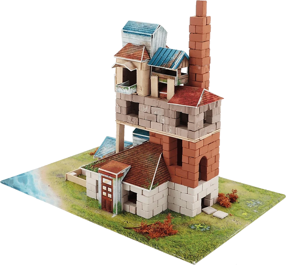Construisez avec de véritables briques cuites à 1000 °C et complétez la structure avec des éléments en bois authentiques. Le résultat paraît solide et crédible.