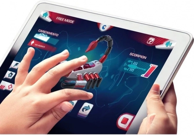 De nombreuses pièces, engrenages et moteurs font du robot scorpion un robot de construction unique. Le contrôle à distance est possible grâce à des commandes haute fréquence et à une application dédiée.