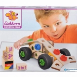 Découvrez l’univers créatif des kits EICHHORN CONSTRUCTOR. Cet ensemble en bois propose 3 modèles en 1 – une formule et deux voitures de course différentes. Grâce à 35 pièces en bois de hêtre et à des connecteurs en plastique colorés, les enfants développent leur motricité fine, leur pensée spatiale et leur créativité. Finition de qualité Made in Germany, bois certifié FSC à 100 % et peintures à base d’eau sûres pour un jeu sécurisé et ludique dès 3 ans.