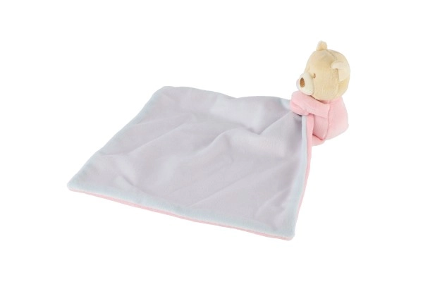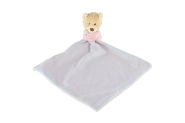 Un ourson adorable solidement attaché à la couverture sert à la fois de doudou et d’accessoire réconfortant.