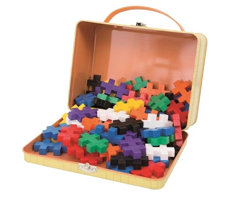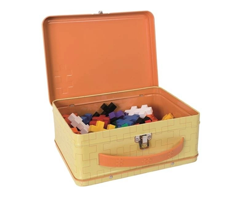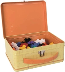 Le coffret comprend une mallette métallique solide avec poignée et loquet, qui maintient les pièces ensemble et facilite leur transport et leur rangement. Les enfants ont ainsi le jeu toujours à portée de main – à la maison, en excursion ou chez les grands-parents. La palette de couleurs de base et variée invite à une infinité d’idées et de jeux. Remarque : les couleurs des pièces peuvent différer des illustrations.