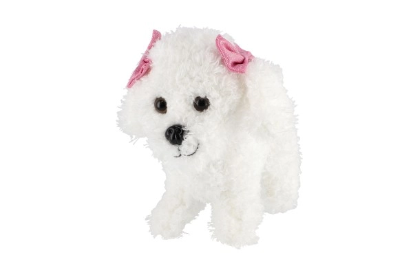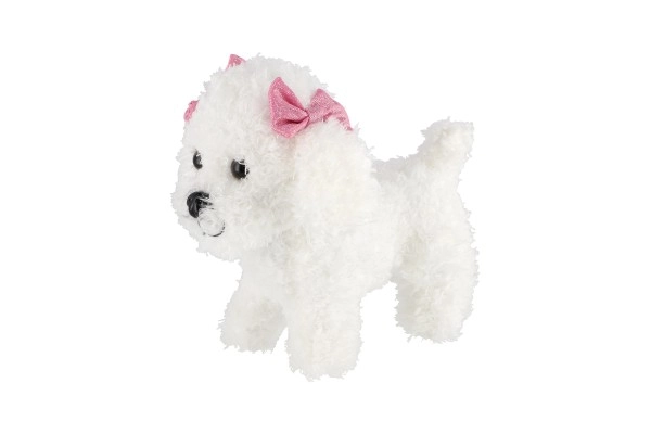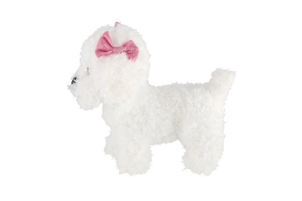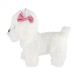 Adorable chien en peluche blanc de 21 cm, idéal comme premier compagnon pour les bébés et les enfants plus grands. Fabriqué en peluche extra douce et moelleuse, avec de délicats petits nœuds roses sur les oreilles, il invite aux câlins du matin au soir. Parfait pour un endormissement paisible et des étreintes apaisantes à tout moment de la journée. Convient dès 0 mois.
