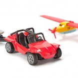 Ce coffret est idéal pour les jeunes pilotes et les passionnés d’automobiles. La voiture rouge avec carrosserie métallique et pneus sport en caoutchouc offre des détails réalistes qui encouragent le jeu créatif. L’avion possède des ailes pliables et des couleurs vives qui stimulent l’imagination.