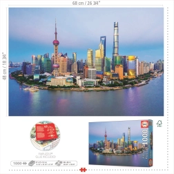 Développez votre créativité avec Educa Puzzle Panorama. Découvrez la beauté de Shanghai au coucher du soleil en assemblant les 1000 pièces de ce puzzle fascinant. De plus, l'emballage comprend GRATUITEMENT COLLE FIX PUZZLE®.