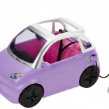 Emmenez vos poupées pour une balade excitante dans le cabriolet moderne avec un toit ouvrant. La voiture a une carrosserie violette élégante avec des détails réalistes, y compris des ceintures de sécurité et un rétroviseur.