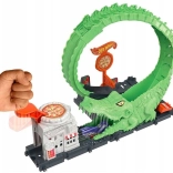 Vivez l’adrénaline avec le set thématique Hot Wheels, où des monstres envahissent la ville et créent des obstacles palpitants et des défis de cascades. La pizzeria sert de lanceur qui propulse la voiture dans une grande boucle transparente et à travers la gueule du crocodile. Le coffret comprend 1 voiture en métal, pour s’amuser dès l’ouverture.
