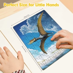 Le puzzle recto-verso en œuf de la collection DINO EGGs Collection de CubicFun offre un double plaisir. D’un côté, vous trouverez une illustration de ptérosaure, et de l’autre un motif abstrait avec des fossiles de dinosaures.