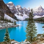 Un panorama hivernal saisissant d’un lac turquoise et de sommets enneigés apporte chez vous la sérénité et la beauté de la nature.