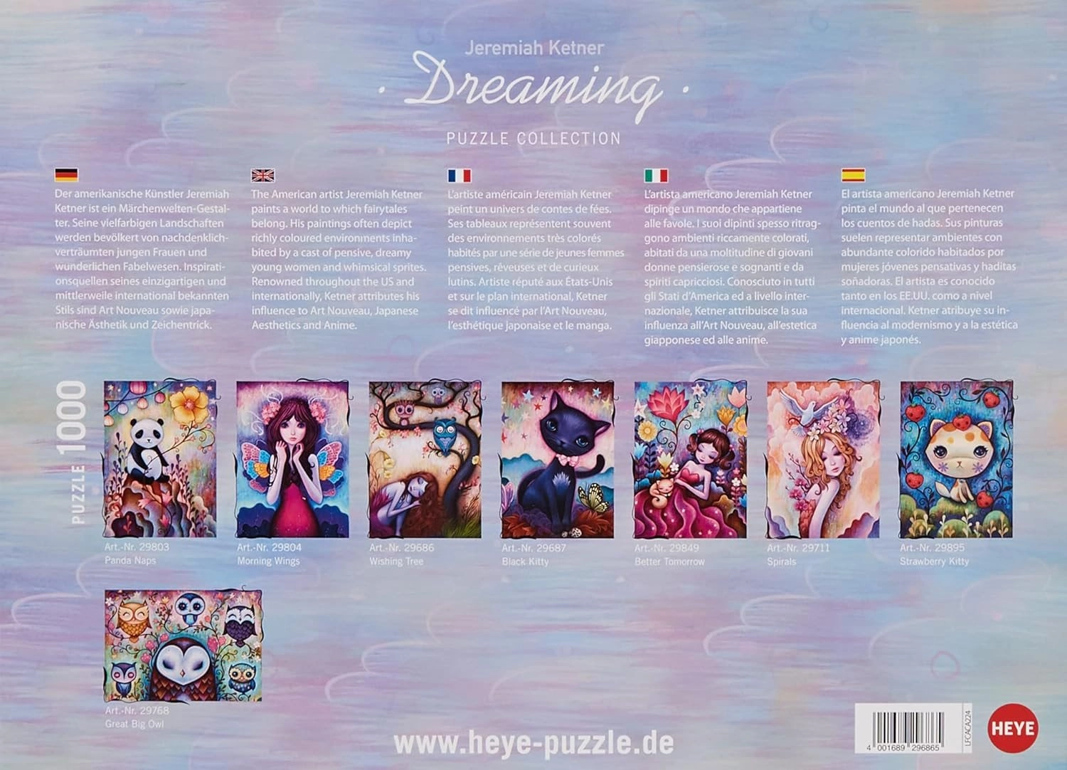 Plongez dans l’atmosphère poétique de la collection HEYE Dreaming. L’œuvre « Arbre des souhaits » du peintre américain de renommée internationale Jeremiah Ketner vous séduira par ses détails délicats, ses couleurs harmonieuses et sa composition onirique. Le puzzle de 1000 pièces offre un excellent défi pour les amateurs d’art comme de casse-têtes.