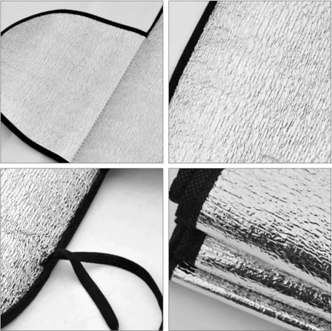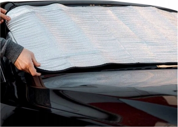 Le pare-soleil se fixe aisément sur le pare-brise et peut être plié en format compact après utilisation.