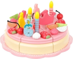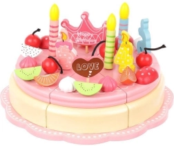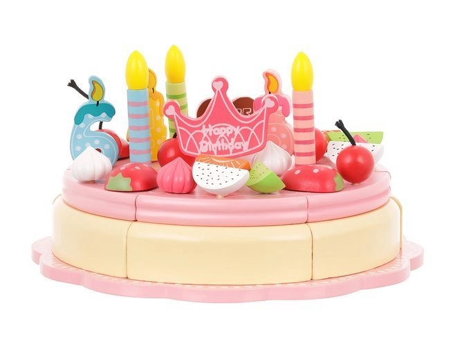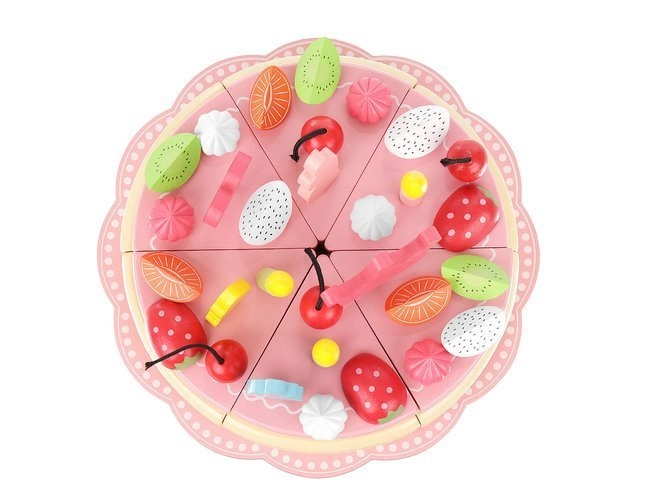 Ce gâteau est fabriqué à partir de bois de haute qualité qui est sûr pour les enfants et offre une beauté intemporelle et une durabilité. Les morceaux du gâteau sont reliés par des aimants, ce qui permet aux enfants de "couper" le gâteau et de le servir sur les assiettes fournies et à l'aide des couverts.