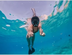 Le masque intégral de snorkeling allie confort et excellente visibilité. Sa conception avec grande visière incurvée offre un champ de vision panoramique à 180°, pour ne manquer aucun détail. Un système innovant de circulation d’air permet de respirer très naturellement par le nez et la bouche, tandis que la technologie Anti-Fog empêche la buée même lors d’une utilisation prolongée.