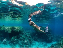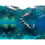 Respirez naturellement par le nez et la bouche et profitez d’une vue panoramique. La grande lentille incurvée élargit la visibilité et accroît le plaisir de l’observation sous-marine sans buée.