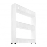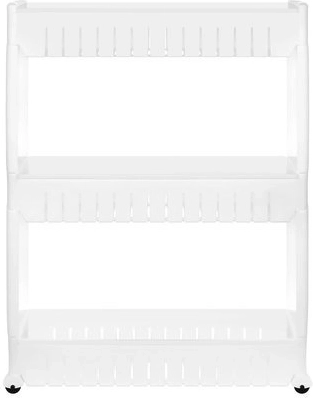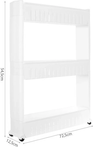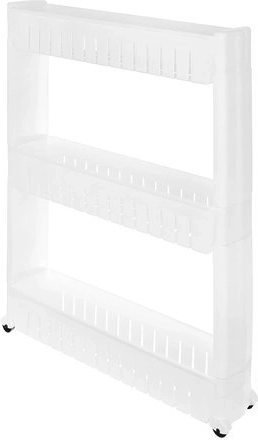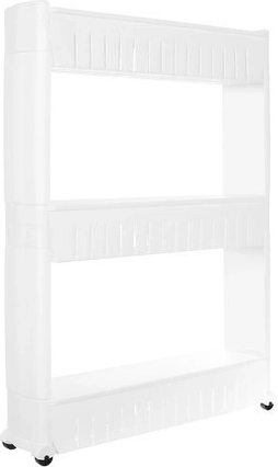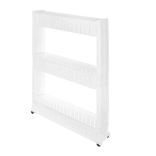 Cette étagère mobile de cuisine sur roulettes est parfaite pour utiliser les espaces étroits entre les armoires. Fabriquée en plastique résistant, elle comprend trois étagères profondes pour organiser vos objets nécessaires.