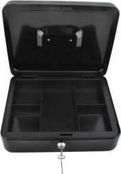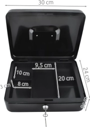 Cette grande caisse à monnaie en métal, d’une élégante couleur noire, combine sécurité, clarté et robustesse. Sa coque en acier peint et ses charnières internes solides protègent le contenu des dommages et des accès non autorisés, tandis que la serrure à clé (2 clés incluses) garantit un verrouillage sûr.
