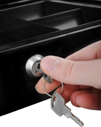 L’insert intérieur en plastique avec compartiments maintient pièces et billets bien ordonnés pour un encaissement plus rapide.