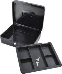 Cette caisse à monnaie grand format protège efficacement les espèces, les documents et les petits objets de valeur. Grâce à sa serrure à clé, sa construction en acier résistante, son organiseur intérieur à compartiments et sa poignée rabattable, elle est idéale pour la maison, le bureau et les événements de vente.