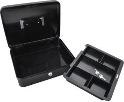 L’insert intérieur en PP propose un agencement clair des pièces et des billets. La poignée encastrée chromée facilite le transport et permet d’empiler plusieurs caisses — une solution pratique pour les caisses, les marchés et les bureaux.