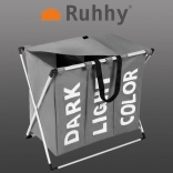 Ce panier à linge spacieux d’une capacité d’environ 130 l offre trois compartiments séparés pour les vêtements foncés, clairs et colorés. L’intérieur imperméable protège le tissu extérieur de l’humidité et des salissures, tandis que le cadre en aluminium stable maintient la forme et facilite la manipulation. Grâce au couvercle avec fermeture velcro, les odeurs indésirables restent à l’intérieur.