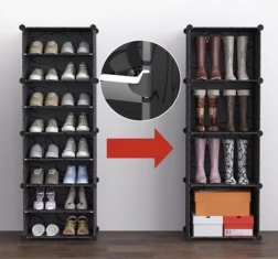 Le meuble à chaussures modulaire est une solution pratique pour les petits comme pour les grands foyers. Grâce à sa structure en kit, vous l’adaptez facilement à l’espace et au type de chaussures et, si nécessaire, vous pouvez l’agrandir avec des modules supplémentaires. Les portes transparentes protègent de la poussière tout en offrant une vue rapide sur le contenu, afin de toujours trouver la paire recherchée immédiatement.