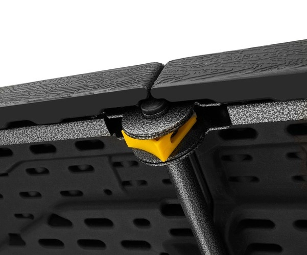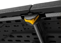 La stabilité est assurée par une structure à cadre en acier avec revêtement par poudre et des tubes de 25 mm de diamètre. Cette table est un excellent choix pour les jardins, terrasses, services traiteur, banquets et conférences, où rapidité de montage, fiabilité et durabilité sont nécessaires.