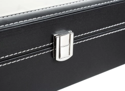 Le couvercle en verre offre un aperçu rapide et une présentation stylée de la collection. Le simili cuir noir avec coutures blanches apporte un look premium.