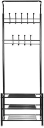 Le cadre métallique durable garantit la stabilité même sous une charge plus élevée, et les pieds réglables aident à compenser les sols irréguliers. La disposition bien pensée des crochets et des étagères facilite l’organisation de toute la famille.