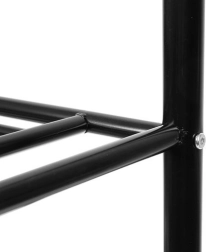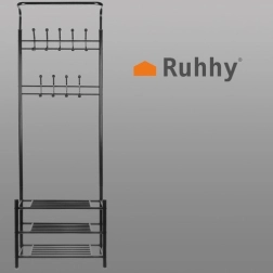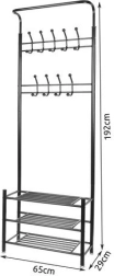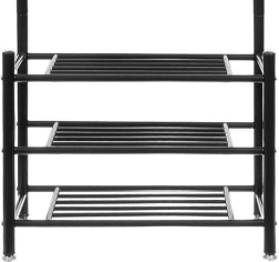 Ce portant pratique combine une tringle supérieure avec crochets et trois étagères inférieures pour les chaussures, sacs ou boîtes. Grâce à son faible encombrement, il est idéal pour l’entrée, le couloir ou la chambre, offrant un accès rapide aux pièces les plus utilisées.
