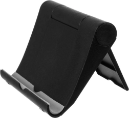 Support de téléphone compact et léger en élégante couleur noire, offrant une utilisation universelle à la maison, au bureau et en déplacement. Grâce à son angle d’inclinaison réglable, vous ajustez facilement la position idéale pour regarder des vidéos, passer des appels vidéo et lire. La structure robuste en plastique PP et le patin antidérapant maintiennent le téléphone stable aussi bien en mode portrait qu’en mode paysage.
