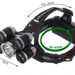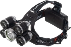 Lampe frontale puissante avec 5 LED CREE T6, proposant 4 modes d’éclairage, un angle réglable à 90° et un bandage élastique confortable. L’alimentation est assurée par 2 batteries 6800 mAh et le pack comprend un chargeur secteur et un chargeur allume-cigare – idéal pour la randonnée, le cyclisme, le bricolage et les situations d’urgence.