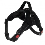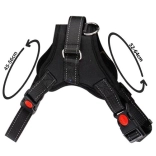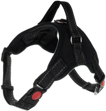 Harnais pour chien sans pression, taille M, en polyester résistant avec rembourrage en coton. Offre une répartition uniforme de la pression, un réglage facile au cou et au poitrail, des éléments réfléchissants pour la visibilité et une poignée solide avec anneau pour laisse. Idéal pour les promenades quotidiennes, l’entraînement et les voyages, pour chiens jusqu’à 30 kg.