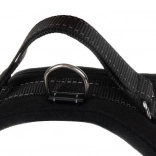 La poignée supérieure pratique facilite la tenue ou le portage lors d’obstacles. L’anneau en D métallique permet une fixation de la laisse rapide et sûre.