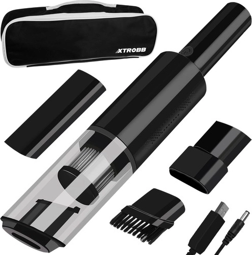 Le paquet comprend de nombreux accessoires, notamment un étui de transport pratique facilitant le transport et le stockage de l'aspirateur avec les embouts fournis. Les accessoires incluent une brosse pour le nettoyage en toute sécurité des parties sensibles et un embout étroit pour les endroits difficiles d'accès.