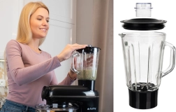 Récipient en verre résistant avec repères et couvercle doté d’une ouverture de remplissage, permettant un ajout sécurisé des ingrédients pendant le mixage. Idéal pour smoothies, vinaigrettes et cocktails glacés.