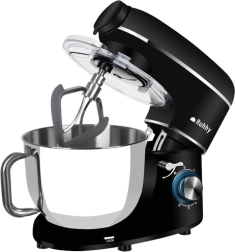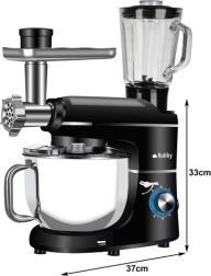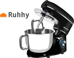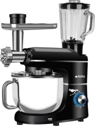 Le robot de cuisine universel 3-en-1 RUHHY combine un mélange planétaire, un blender en verre 1,5 l et un hachoir à viande dans un appareil performant de 2200 W. Grâce au bol inox de 6,2 l avec poignée, aux 6 vitesses + PULSE et à trois accessoires professionnels, vous fouettez, mélangez et pétrissez facilement les pâtes, tout en pouvant hacher de la viande ou préparer des smoothies. Inclut une protection anti-éclaboussures et un riche assortiment d’accessoires, dont une poche à douille.