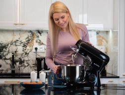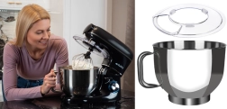 Mélange homogène sur toute la surface du bol grâce à la trajectoire planétaire des accessoires. Le récipient en inox avec poignée pratique et couvercle anti-éclaboussures maintient la propreté même à grande vitesse.