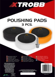 Le pack comprend trois duretés : noir – souple pour la finition et les cires, jaune – moyen pour le polissage et une correction légère, blanc – dur pour un enlèvement plus rapide et l'élimination des rayures. L'adaptateur M14 / 8 mm fourni permet un montage facile et sûr sur la plupart des perceuses et visseuses sans fil, jusqu'à 3000 tr/min.