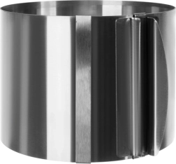 L’acier inoxydable de qualité est hygiénique, n’absorbe pas les odeurs et convient aux fours électriques, à gaz et à convection. L’emballage comprend des clips pour fixer le diamètre, grâce auxquels le cercle conserve sa forme lors du coulage de la pâte et de la cuisson.