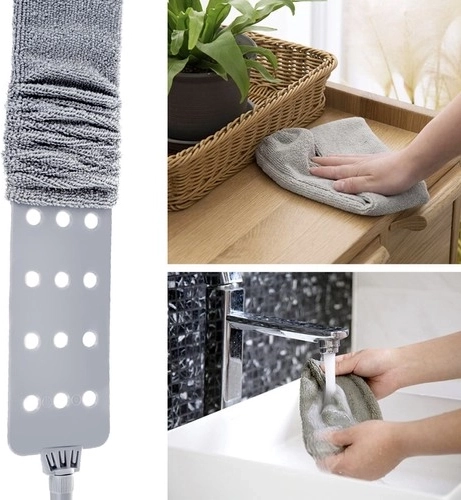 Avec une poignée télescopique en acier inoxydable, vous pouvez atteindre des surfaces difficiles d'accès, comme les plafonds ou les sommets de hautes armoires, sans risque de chutes ou de tension corporelle.